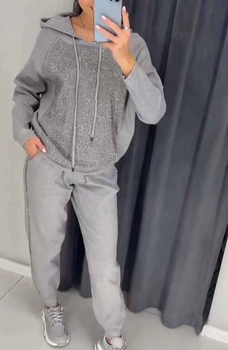 Make a statement without sacrificing comfort in this glamorous two-piece set. Designed with a soft feel and sparkling details, it delivers a luxury look that’s still easy to wear. Perfect for travel, casual outings, or relaxed evenings, it keeps you cozy, confident, and stylish in every moment.